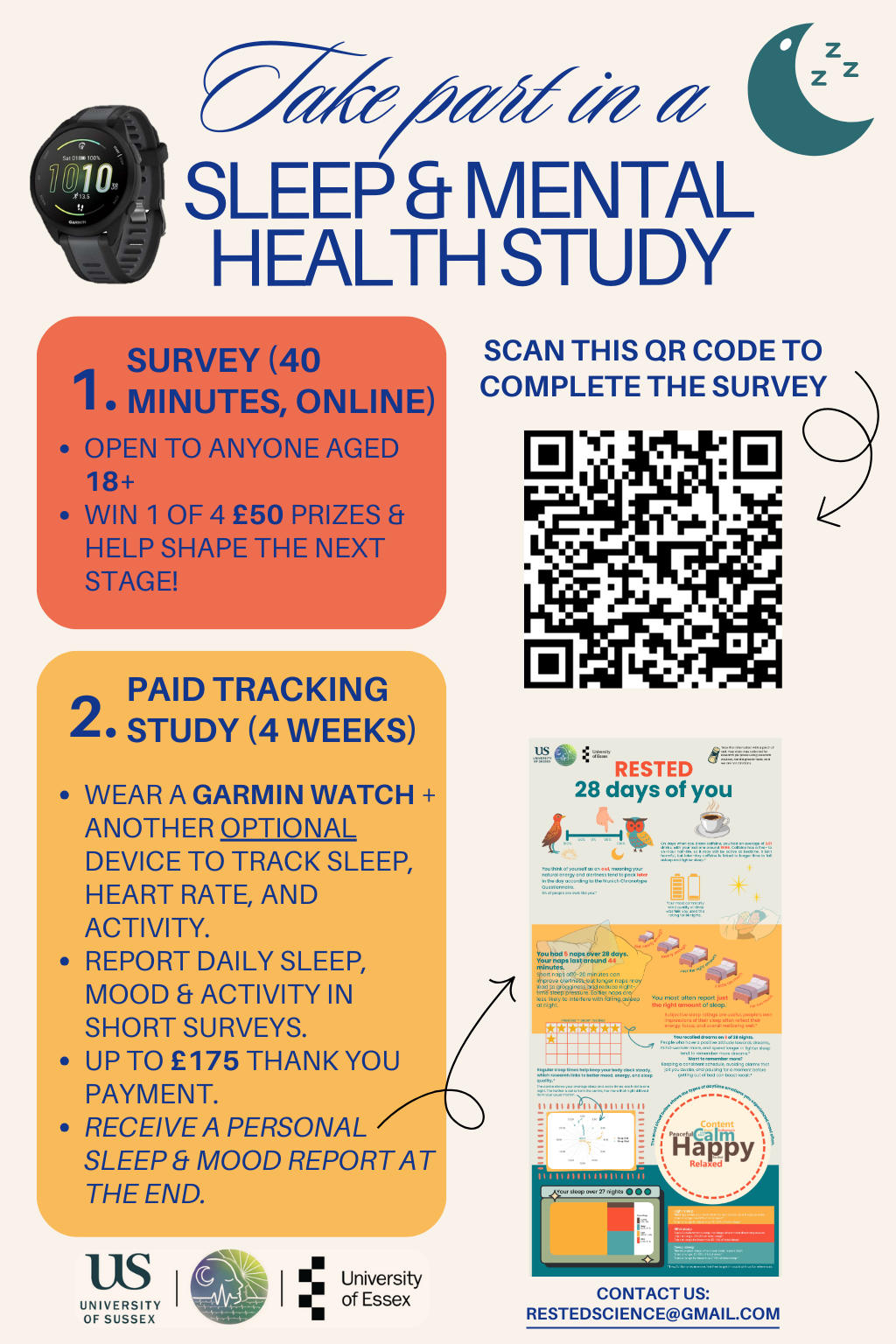 Everyone that completes this survey will be entered into four £50 draws. Participating will benefit their understanding of the links between peoples’ sleep, heart and mental health. This study provides a unique opportunity to better understand the role of these factors in feeling of dissociation, a particularly under-researched area. By taking part, you may be offered the chance to take part in a follow-up study where you may be paid up to £175.